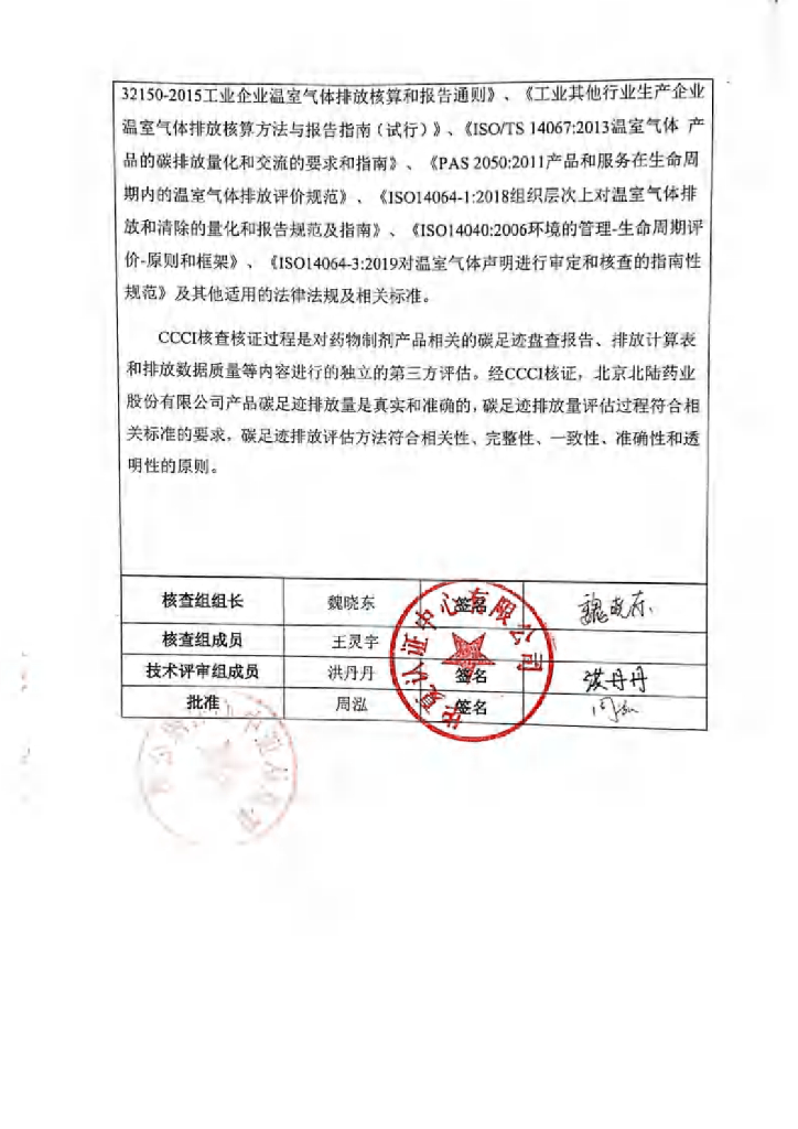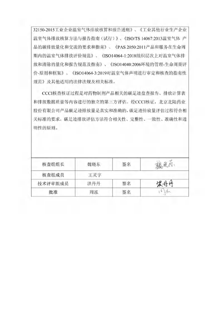 北陆药业:2020年产品碳足迹核查报告书.pdf