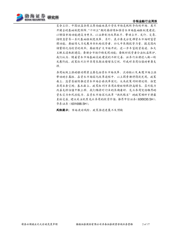 渤海证券:非银金融行业周报:市场成交维持高位,关注基本面支撑下券商价值.pdf