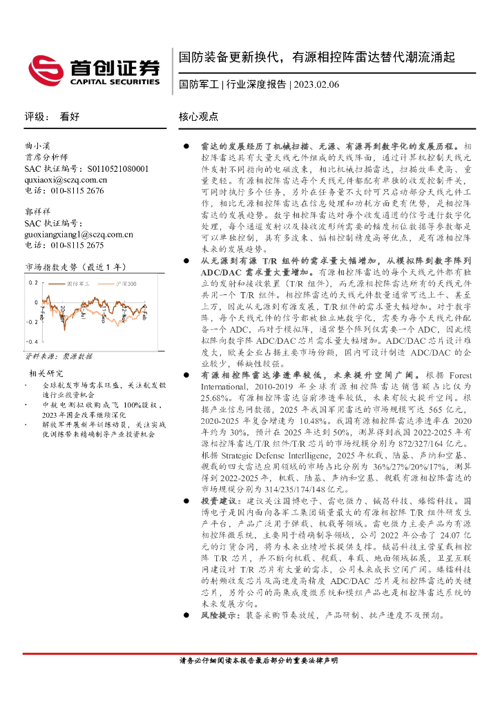 首创证券:国防军工行业深度报告:国防装备更新换代,有源相控阵雷达替代潮流涌起.pdf