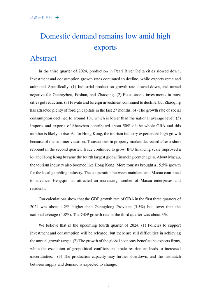 北大汇丰商学院:内需回落,出口仍高增长——粤港澳大湾区经济2024年第三季度分析报告.pdf