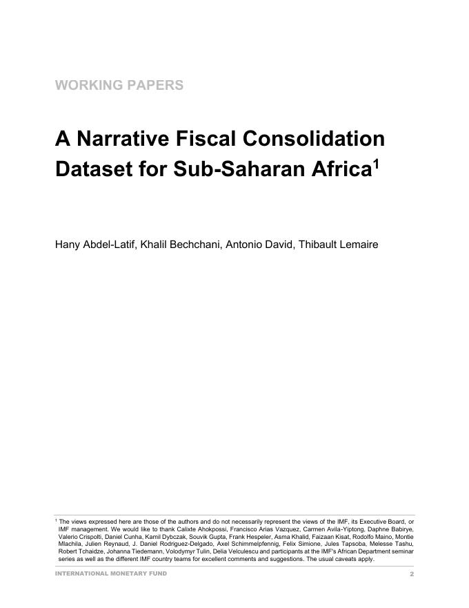 国际货币基金组织:撒哈拉以南非洲的叙述性财政整合数据集(英文版).pdf