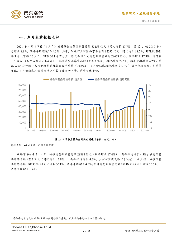 远东资信:2021年4月社零与重点行业债券发行人月度观察:社零同比增速回落,重点行业发债规模环比下降.pdf