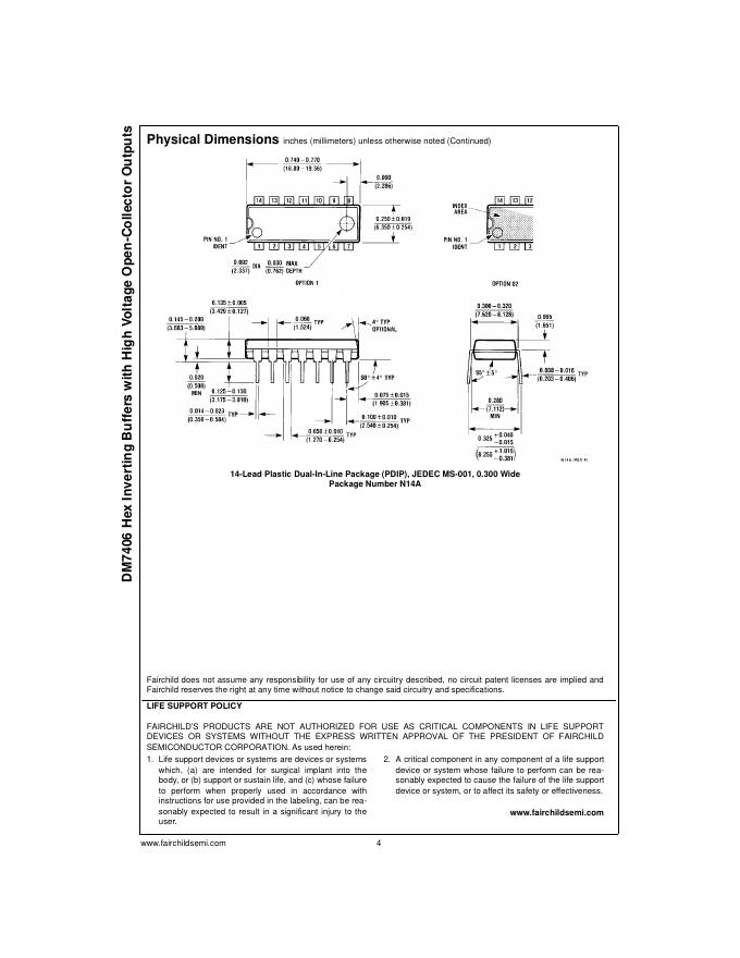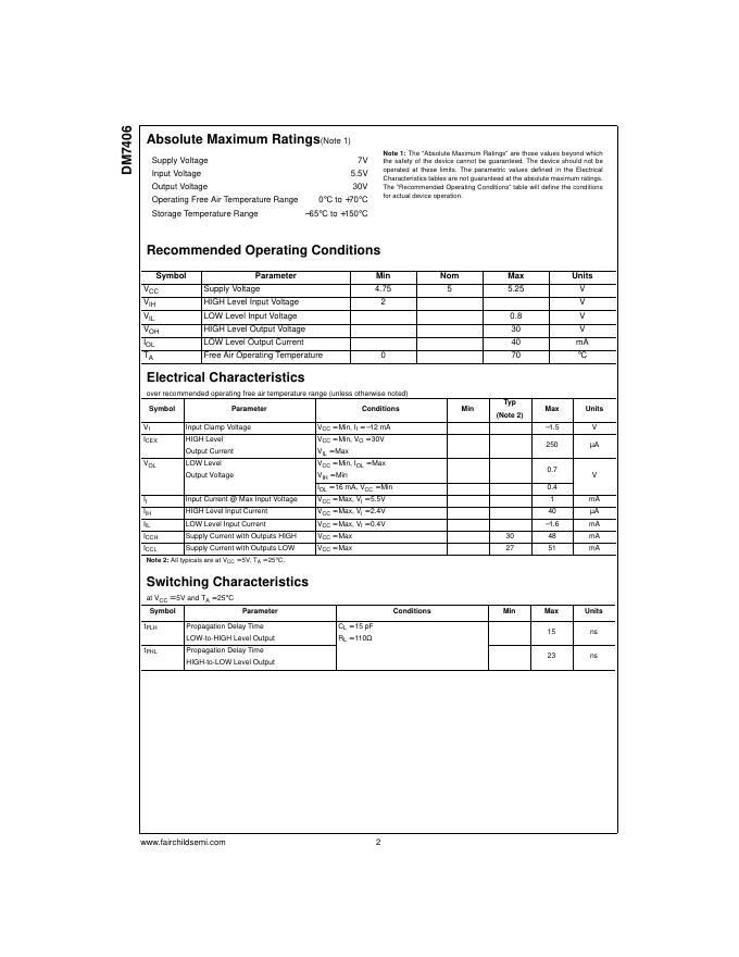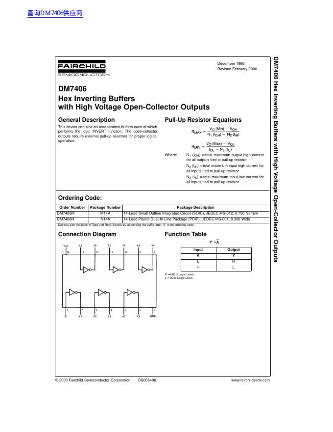 FAIRCHILD DM7406 Hex Inverting Buffers with High Voltage Open-Collector Outputs 数据手册.pdf