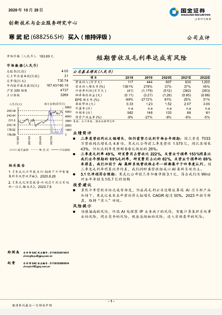 国金证券:寒武纪(688256)-短期营收及毛利率达成有风险.pdf