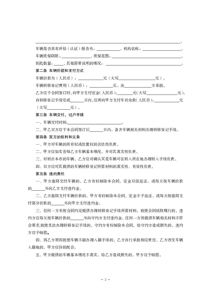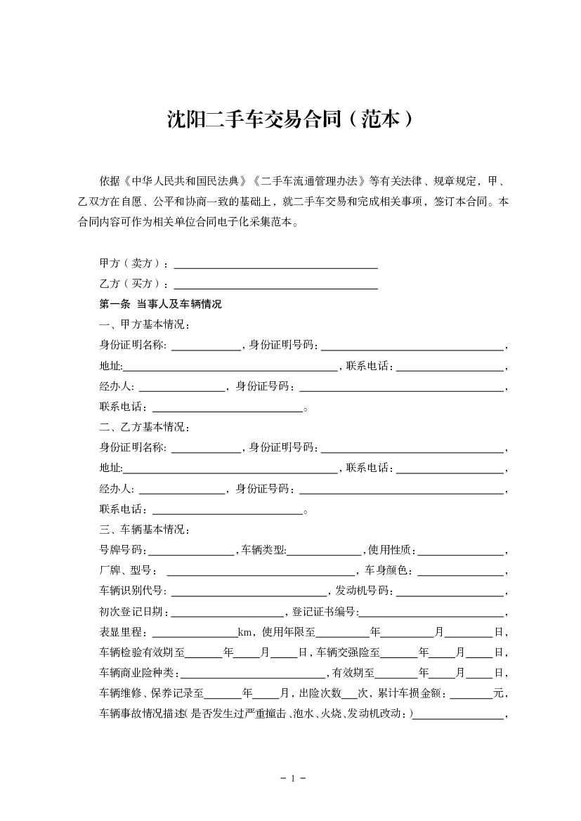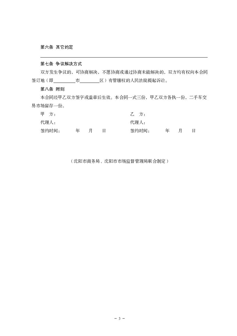 沈阳二手车交易合同(范本).pdf