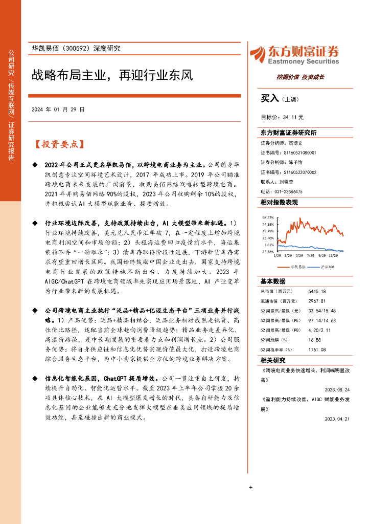 东方财富证券:华凯易佰(300592)-战略布局主业,再迎行业东风.pdf
