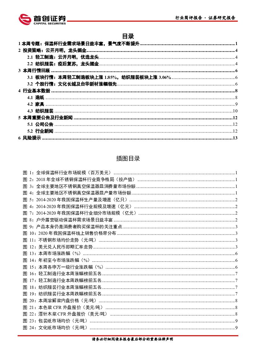 首创证券:轻工制造及纺织服装行业周报:保温杯行业需求场景日益丰富,景气度不断提升.pdf