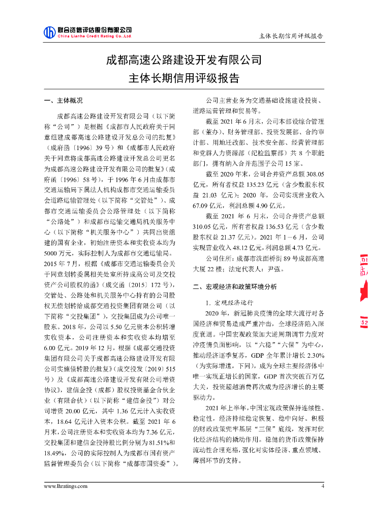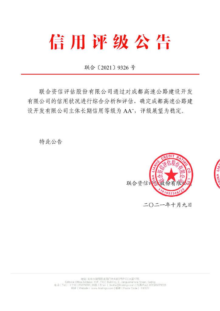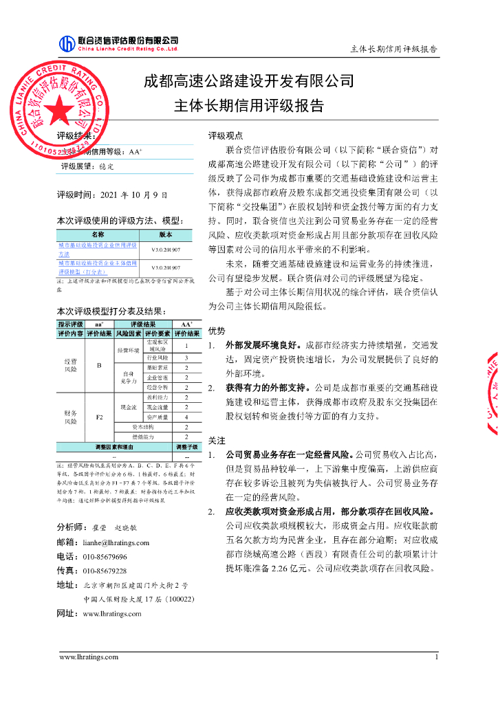 联合资信:成都高速公路建设开发有限公司主体信用评级报告及跟踪评级安排.pdf