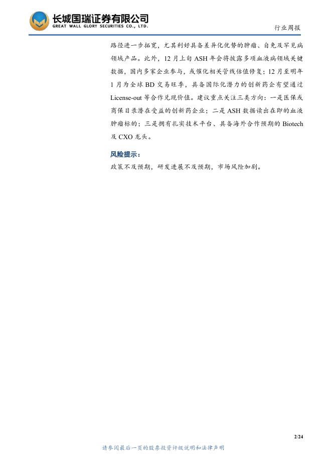 长城国瑞证券:医药生物行业双周报2025年第24期总第147期:ASH数据催化临近,关注血液病与商保目录受益标的.pdf