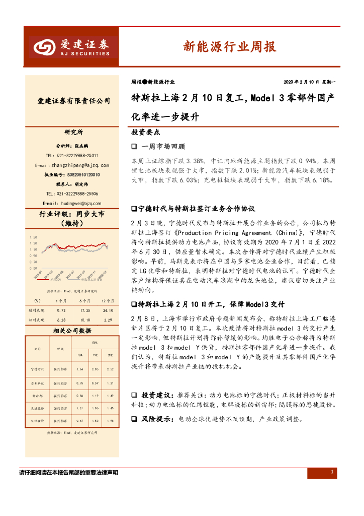 爱建证券:新能源行业周报:特斯拉上海2月10日复工,Model 3零部件国产化率进一步提升.pdf