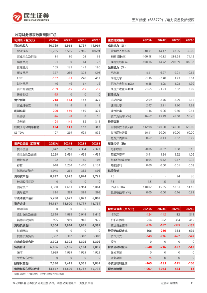 民生证券:五矿新能(688779)-2024年三季报点评:短期业绩承压,新品及出海构筑长期竞争力.pdf
