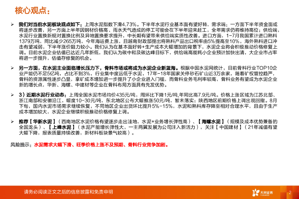天风证券:水泥制造行业研究周报:需求继续改善,西北价格小幅回调.pdf
