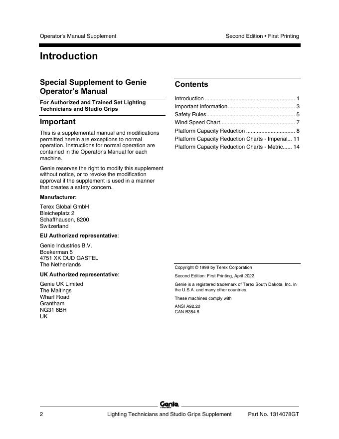 Genie Operator's Manual Supplement For Authorized and Trained Set Lighting Technicians and Studio Grips.pdf