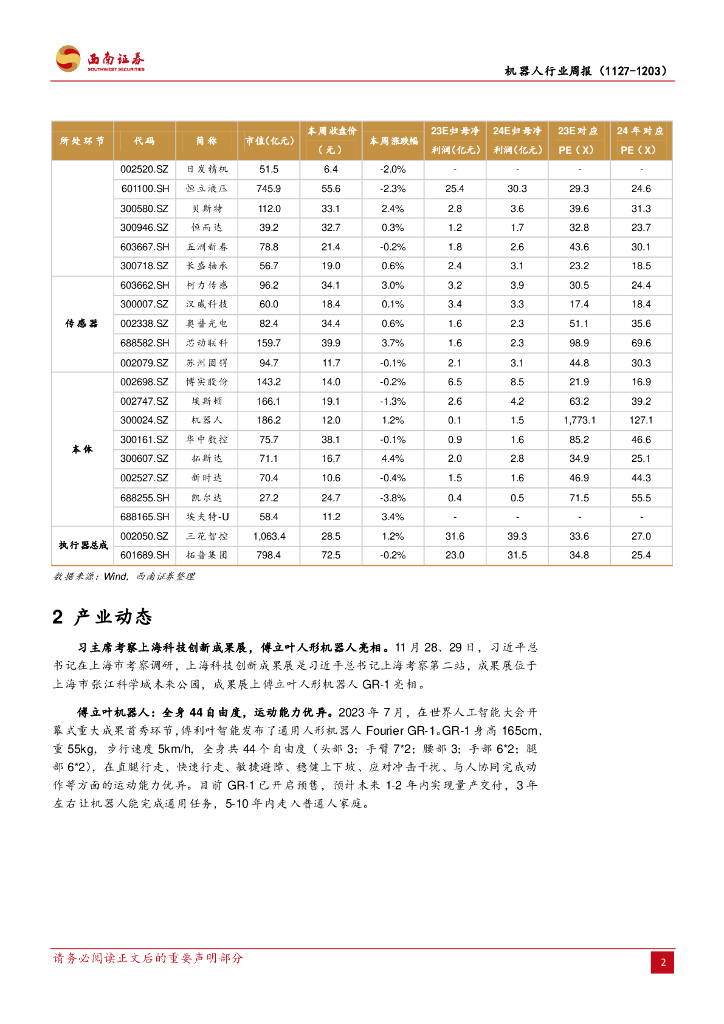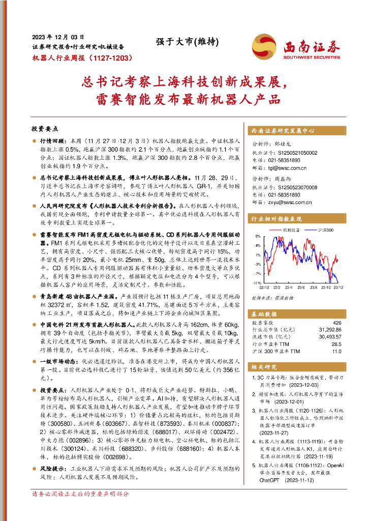 西南证券:机器人行业周报:总书记考察上海科技创新成果展,雷赛智能发布最新机器人产品.pdf
