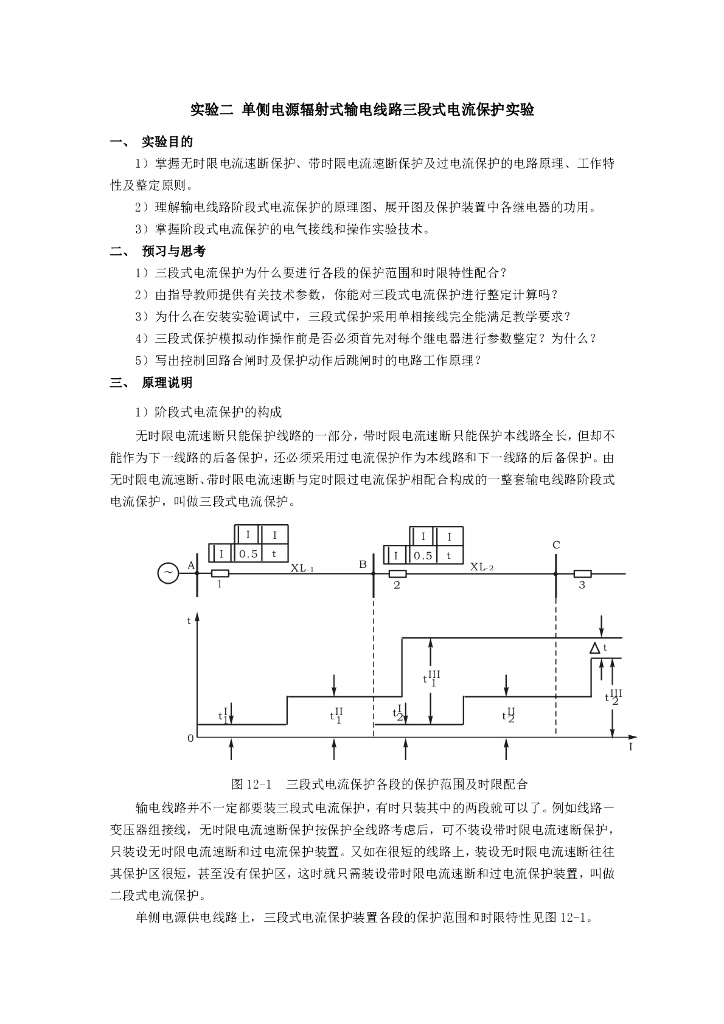 单侧电源辐射式输电线路三段式电流保护实验.pdf