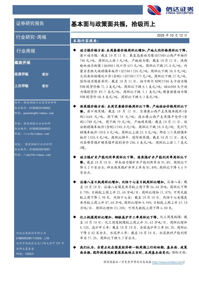 信达证券:煤炭开采行业周报:基本面与政策面共振,拾级而上.pdf