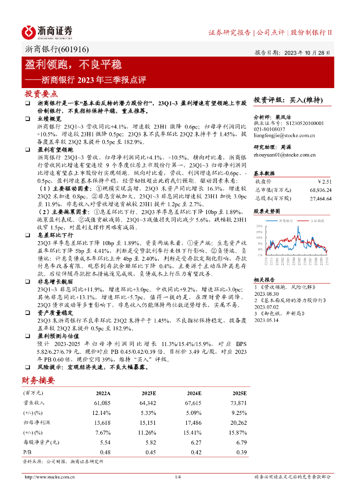 浙商证券:浙商银行(601916)-盈利领跑,不良平稳.pdf