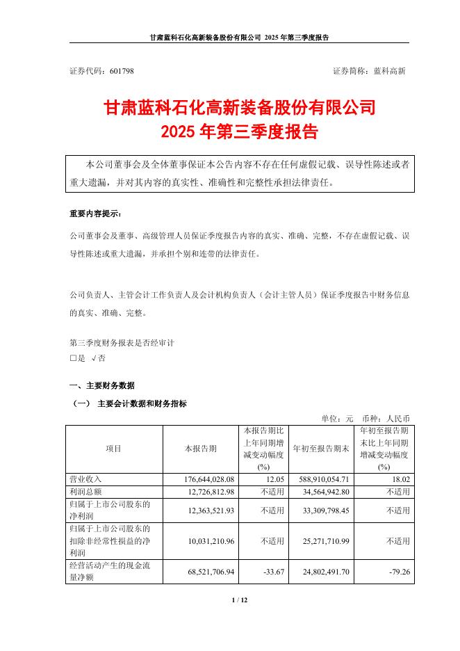 601798-蓝科高新:甘肃蓝科石化高新装备股份有限公司2025年第三季度报告.pdf