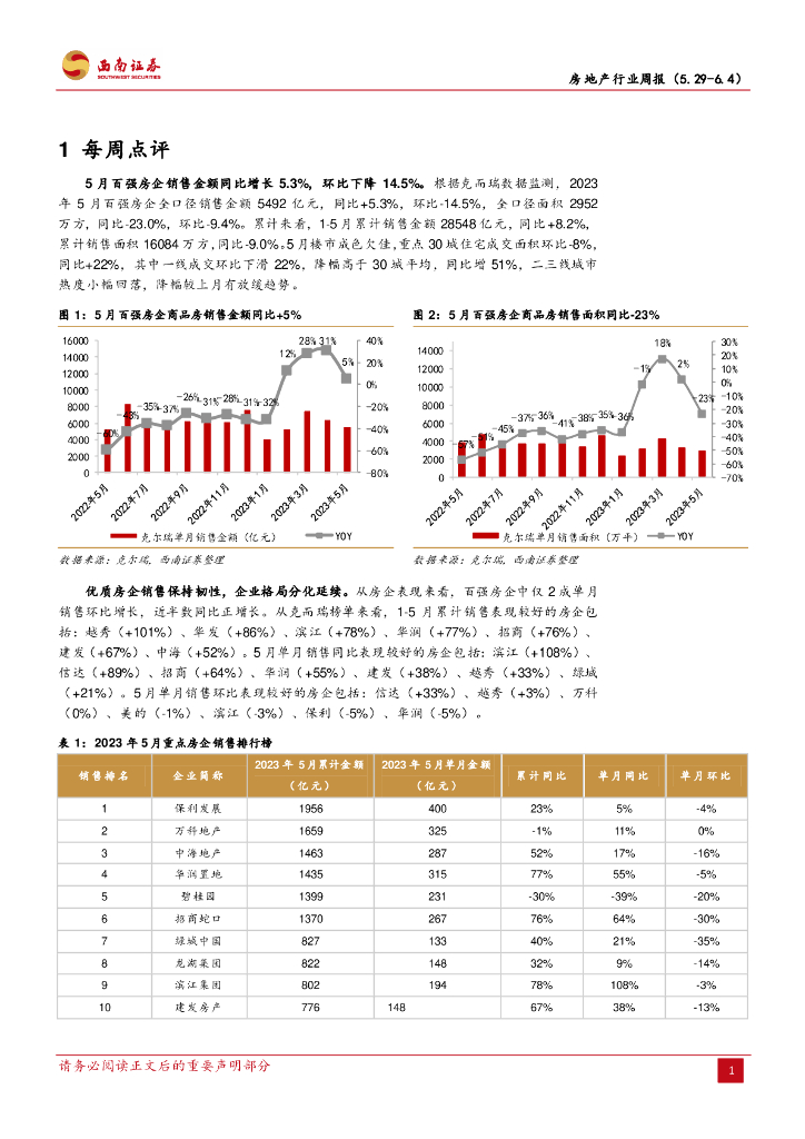 西南证券:房地产行业周报:5月百强房企销售欠佳,青岛楼市政策放松.pdf