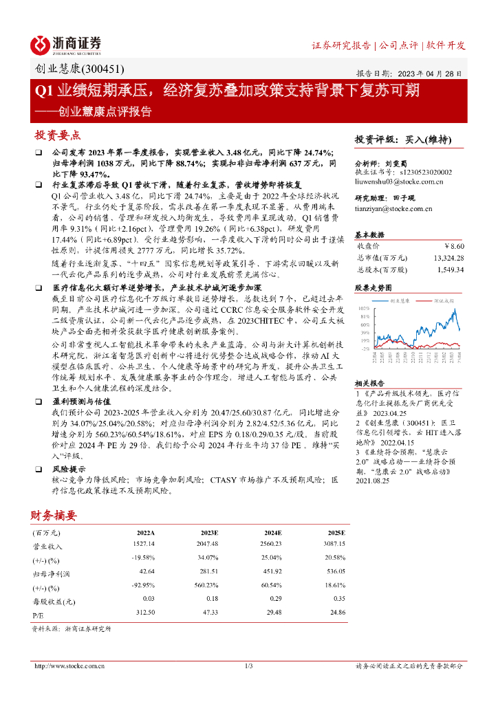 浙商证券:创业慧康点评报告:Q1业绩短期承压,经济复苏叠加政策支持背景下复苏可期.pdf