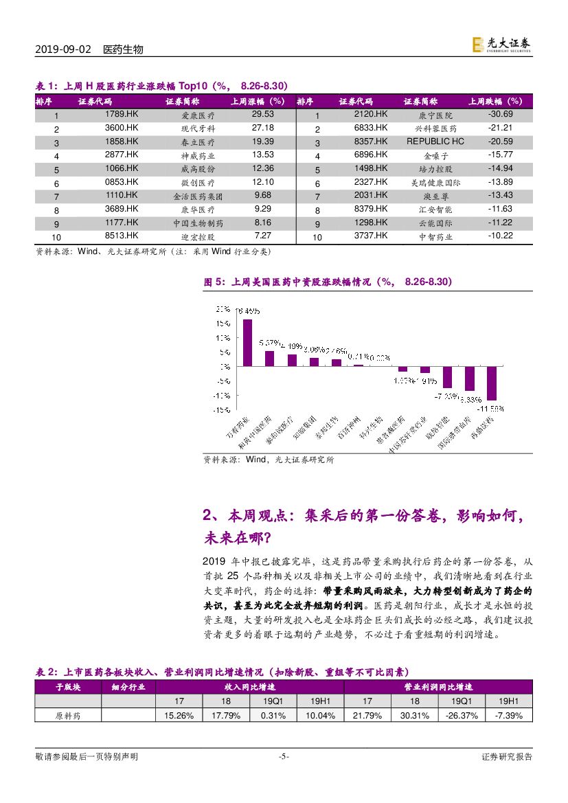 光大证券:医药生物行业跨市场周报:中报总结:集采后的第一份答卷,影响如何,未来在哪?.pdf