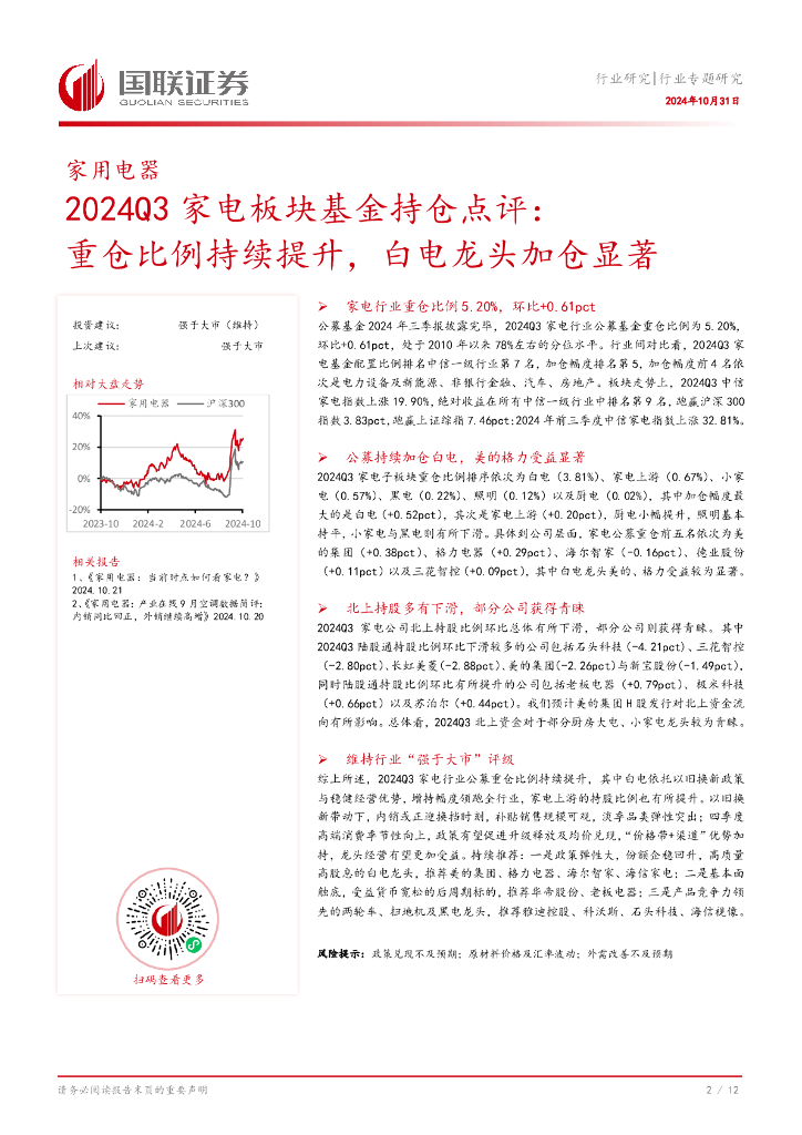 国联证券:2024Q3家电板块基金持仓点评:重仓比例持续提升,白电龙头加仓显著.pdf