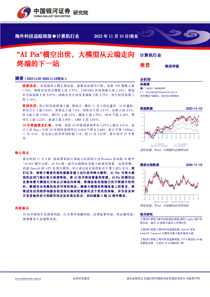 中国银河:计算机行业海外科技追踪周报:"AIPin"横空出世,大模型从云端走向终端的下一站.pdf