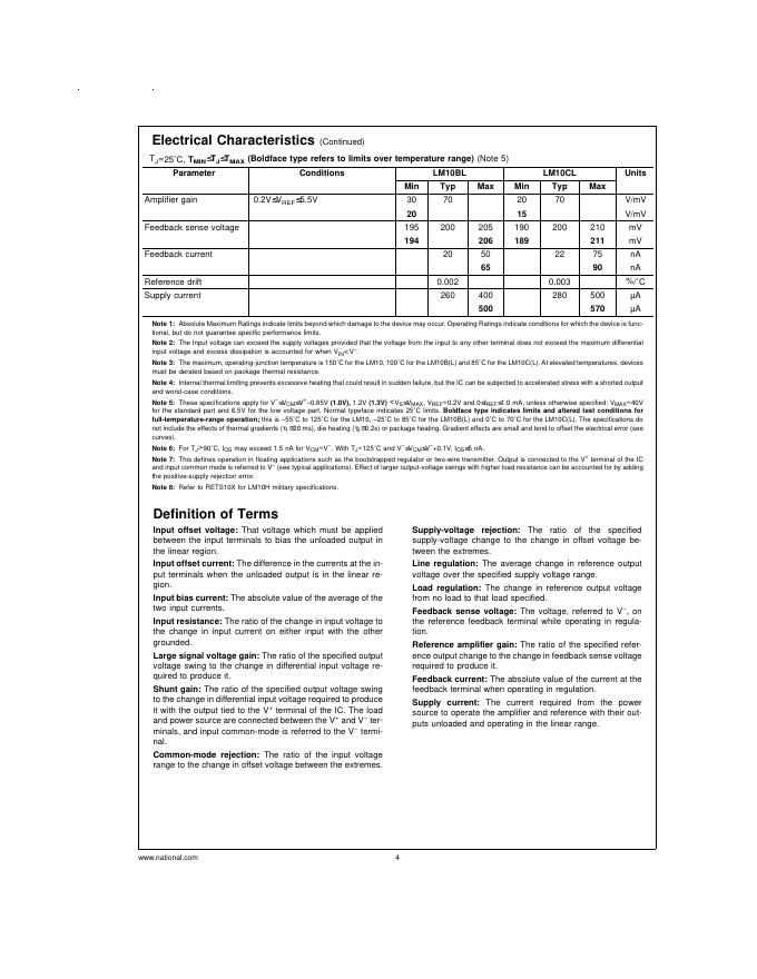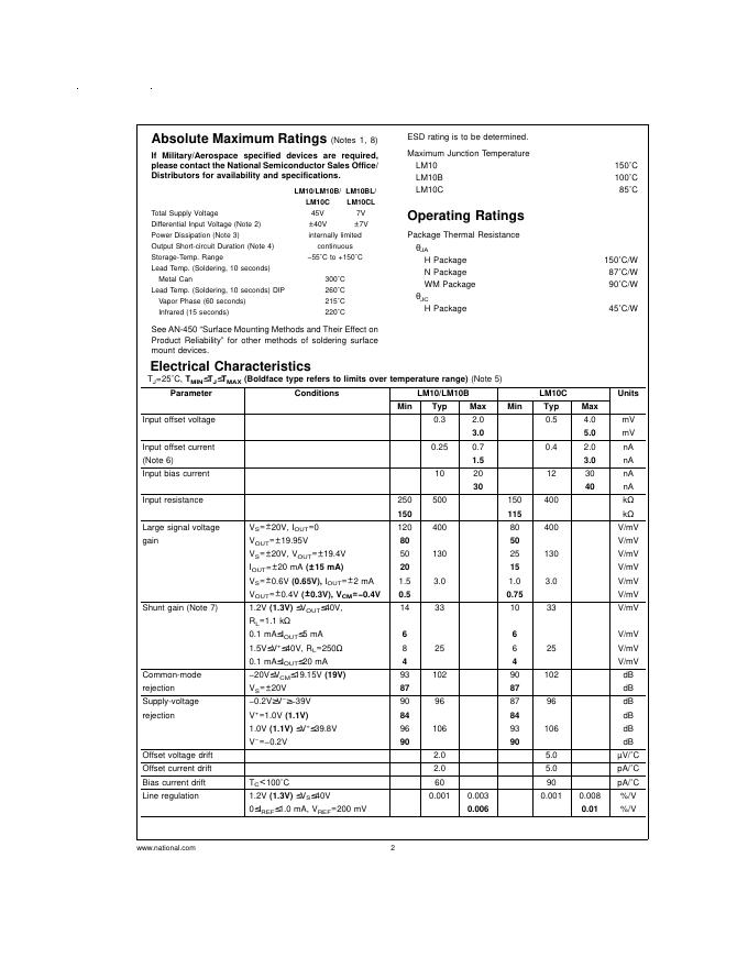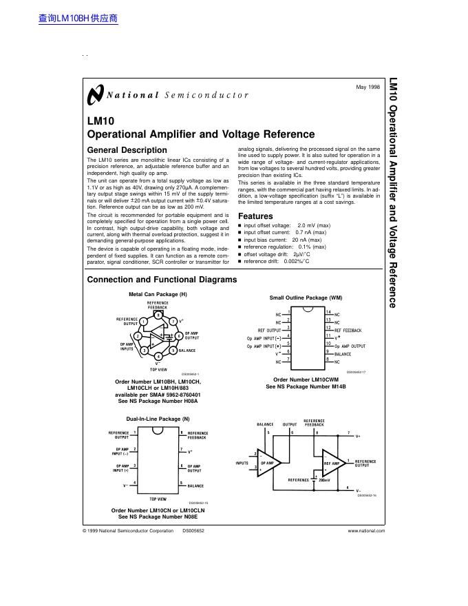 National Semiconductor LM10 Operational Amplifier and Voltage Reference 数据手册.pdf