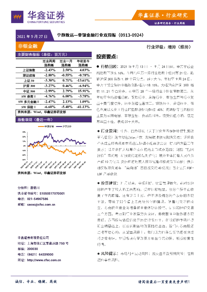 华鑫证券:非银金融行业双周报:宁静致远.pdf