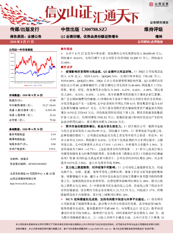山西证券:中信出版(300788)-Q2业绩回暖,优势品类份额逆势增长.pdf