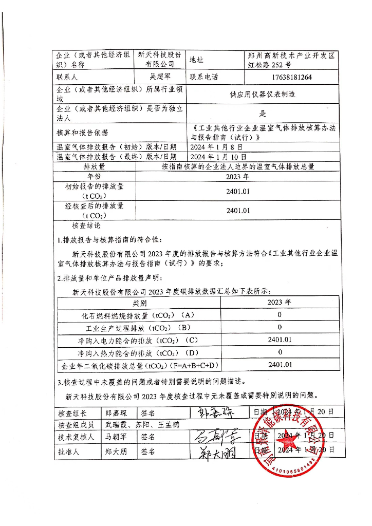新天科技股份有限公司:2023年度温室气体排放核查报告.pdf