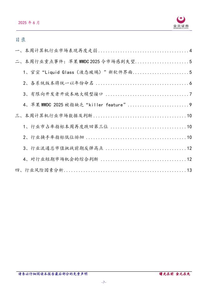 金元证券:计算机行业周报:苹果WWDC2025不及市场预期.pdf