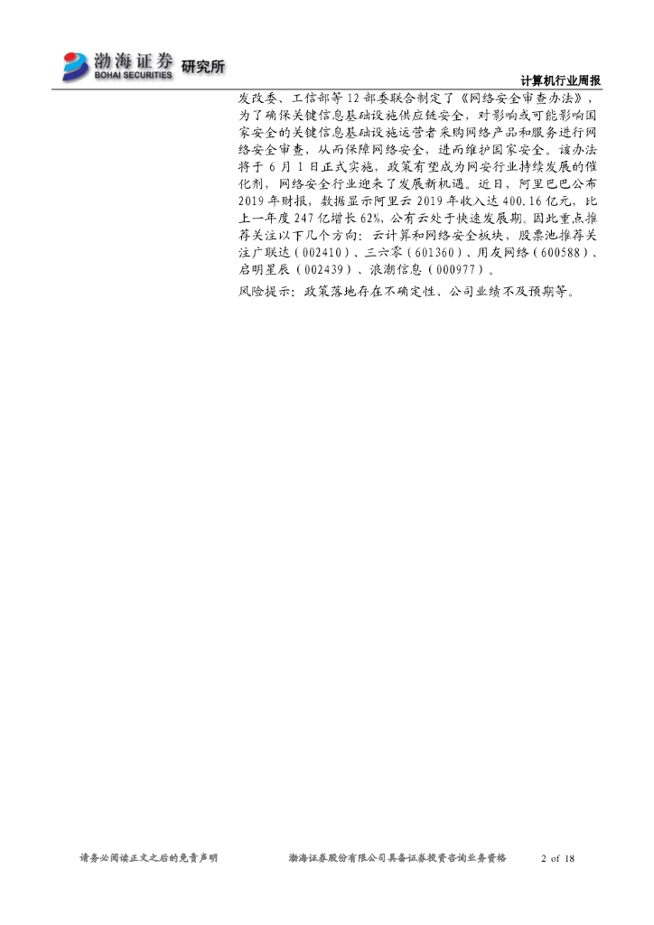 渤海证券:计算机行业周报:市场持续回调,网安行业再迎利好.pdf