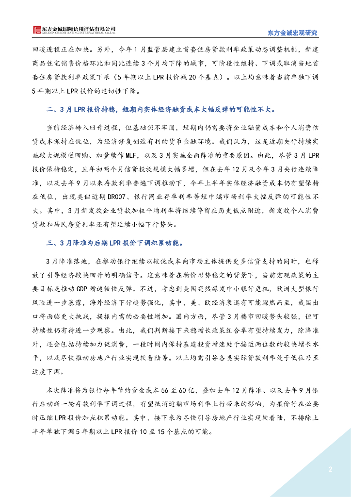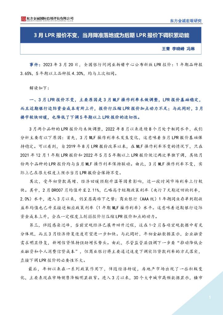 东方金诚:3月LPR报价不变,当月降准落地或为后期LPR报价下调积累动能(2023年3月LPR报价点评).pdf