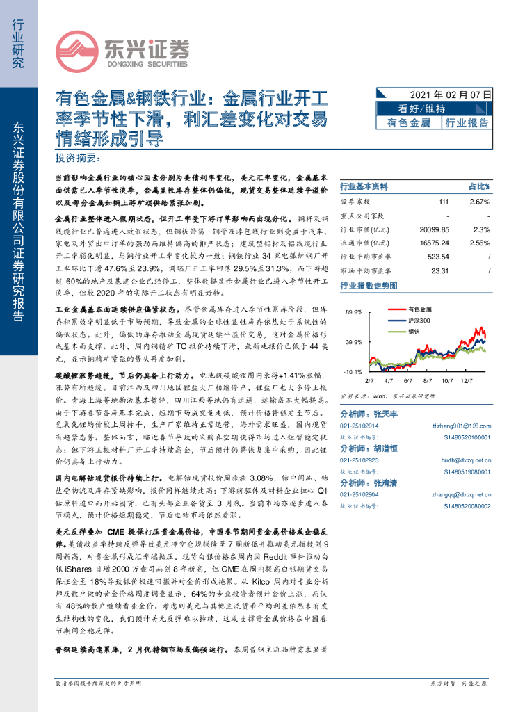 东兴证券:有色金属&钢铁行业:金属行业开工率季节性下滑,利汇差变化对交易情绪形成引导.pdf