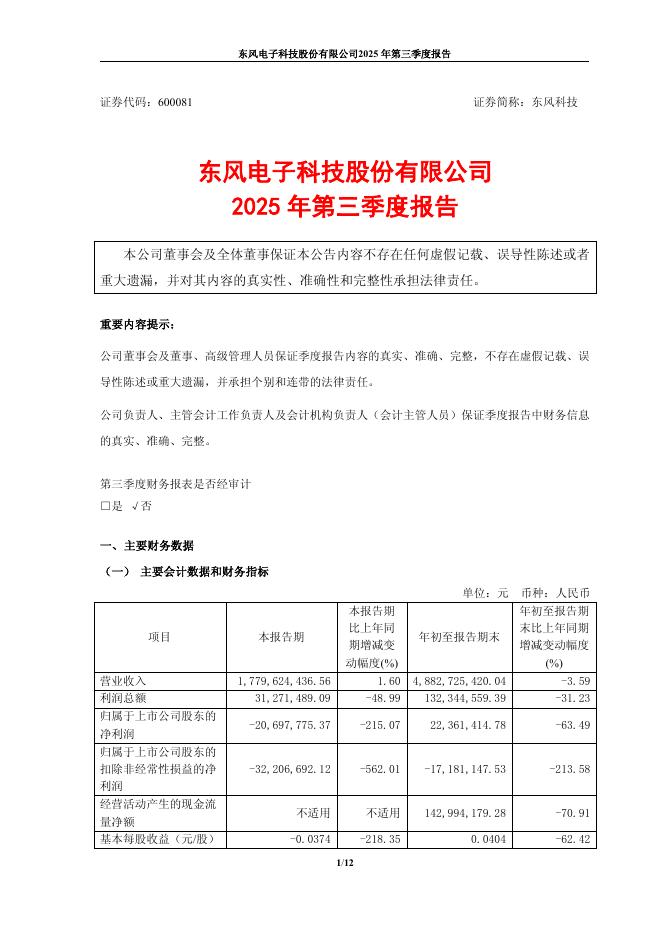 600081-东风科技:东风电子科技股份有限公司2025年第三季度报告.pdf