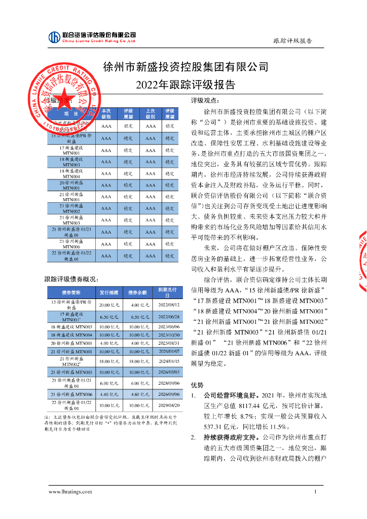 联合资信:徐州市新盛投资控股集团有限公司2022年跟踪评级报告.pdf