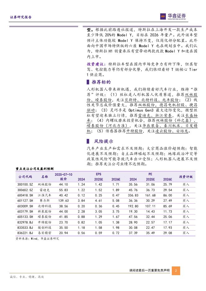 华鑫证券:汽车行业周报:字节已产超千台物流机器人,特斯拉Q2产销量环比改善.pdf