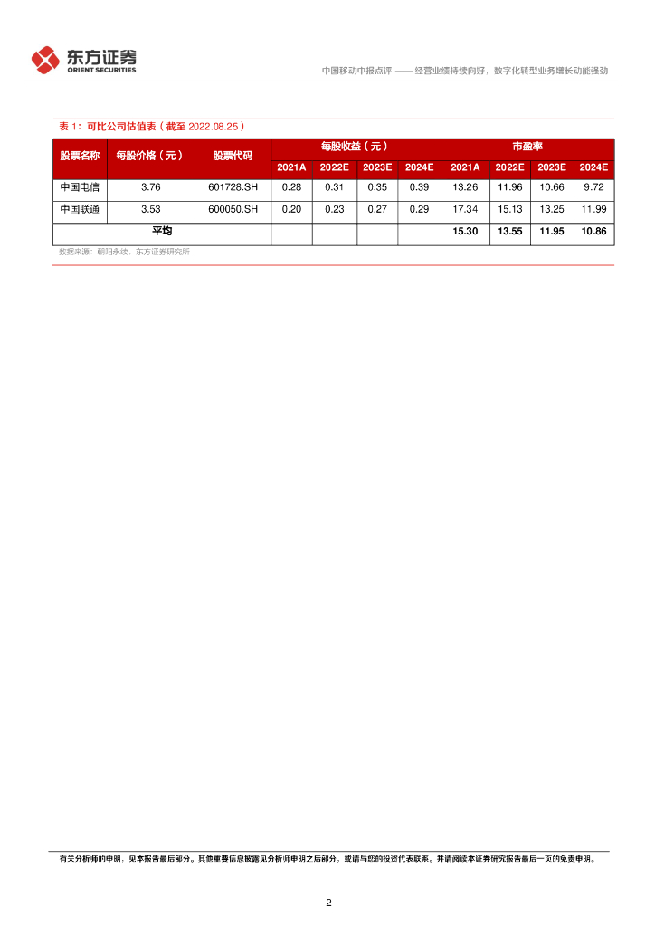 东方证券:中国移动2022年中报点评:经营业绩持续向好,数字化转型业务增长动能强劲.pdf