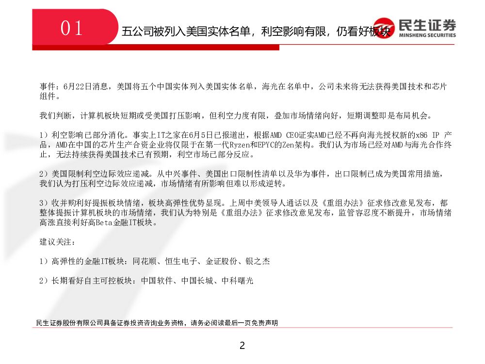 民生证券:计算机:五公司被列入美国实体名单,利空影响有限,仍看好板块.pdf