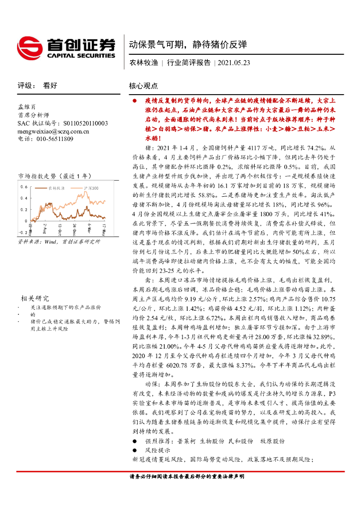 首创证券:农林牧渔行业简评报告:动保景气可期,静待猪价反弹.pdf