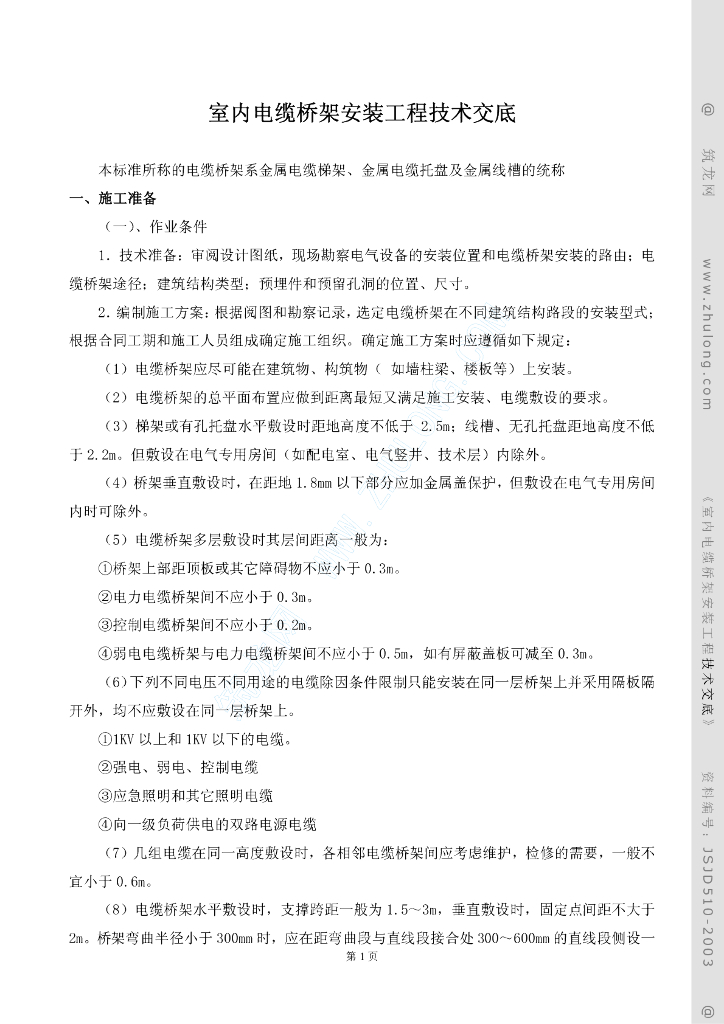 室内电缆桥架安装工程技术交底.pdf