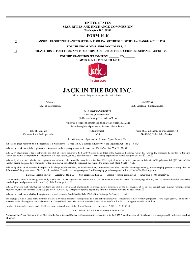 Jack in the Box Inc.(JACK)2021财年年度报告(英文版).pdf