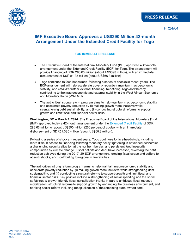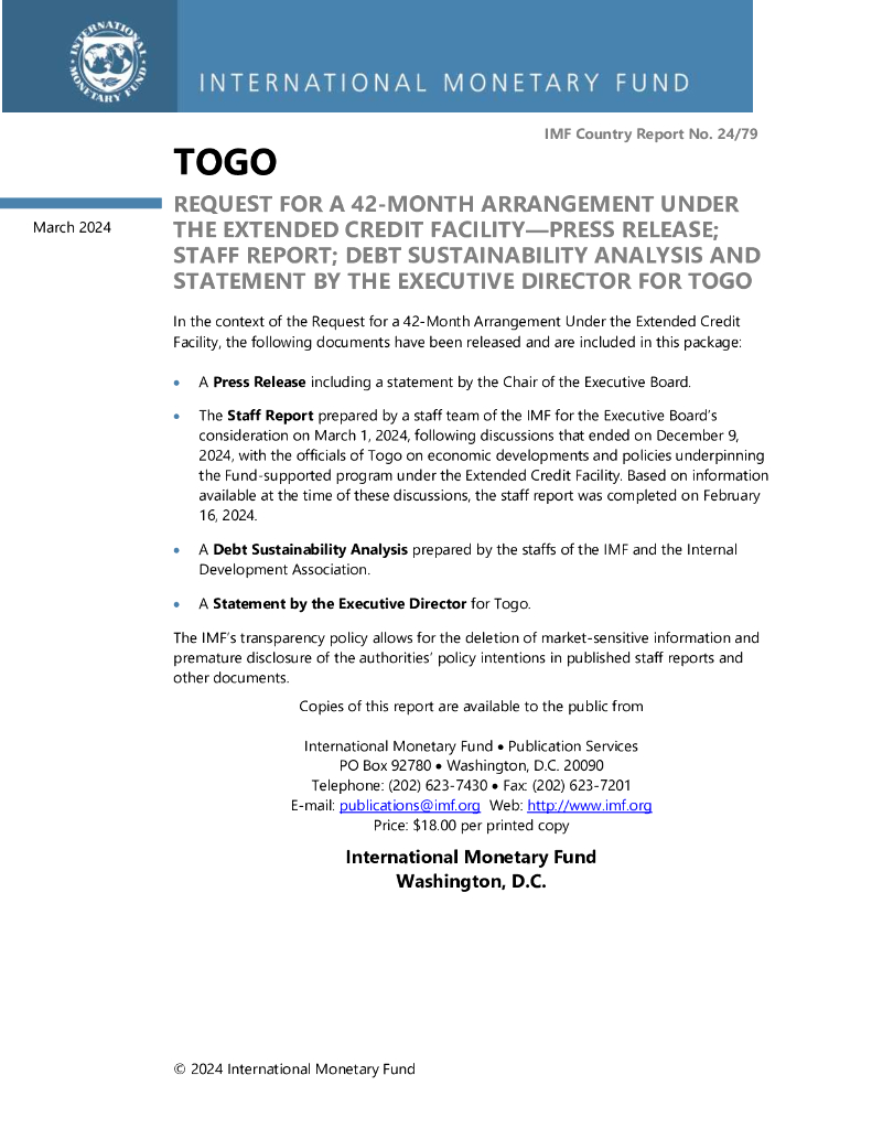 国际货币基金组织:2024多哥关于延长信贷安排下42个月安排的请求新闻稿员工报告(英文版).pdf