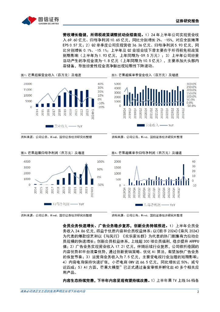 国信证券:芒果超媒(300413)-24年中报点评:所得税影响短期业绩表现,会员业务量质双升.pdf