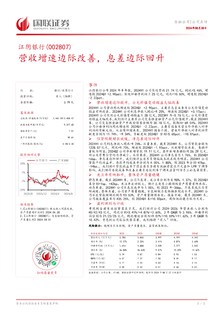国联证券:江阴银行(002807)-营收增速边际改善,息差边际回升.pdf