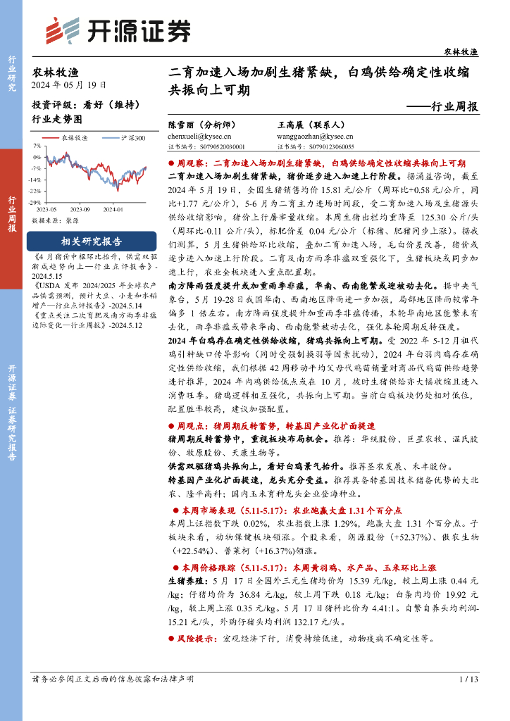 开源证券:农林牧渔行业周报:二育加速入场加剧生猪紧缺,白鸡供给确定性收缩共振向上可期.pdf