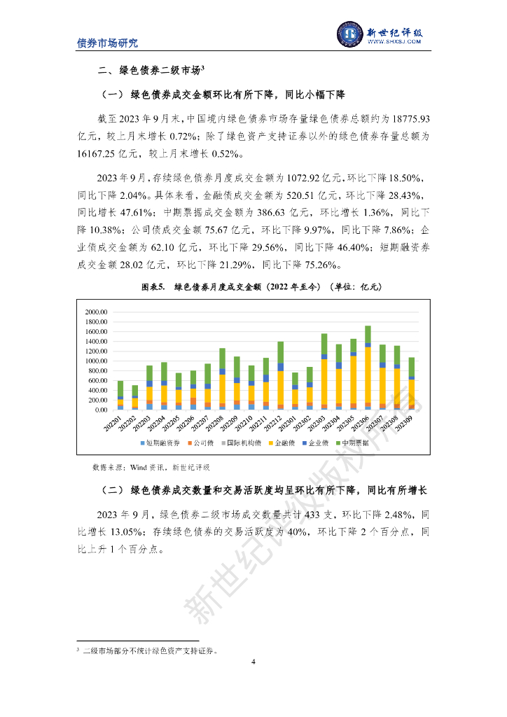 新世纪评级:绿色债券发行规模环比同比均下降——2023年9月中国绿色债券市场发行和交易概况.pdf