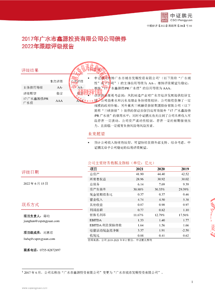 鹏元:2017年广水市鑫源投资有限公司公司债券2022年跟踪评级报告.pdf