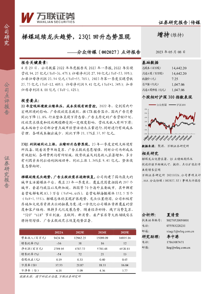万联证券:分众传媒(002027)-点评报告:梯媒延续龙头趋势,23Q1回升态势显现.pdf
